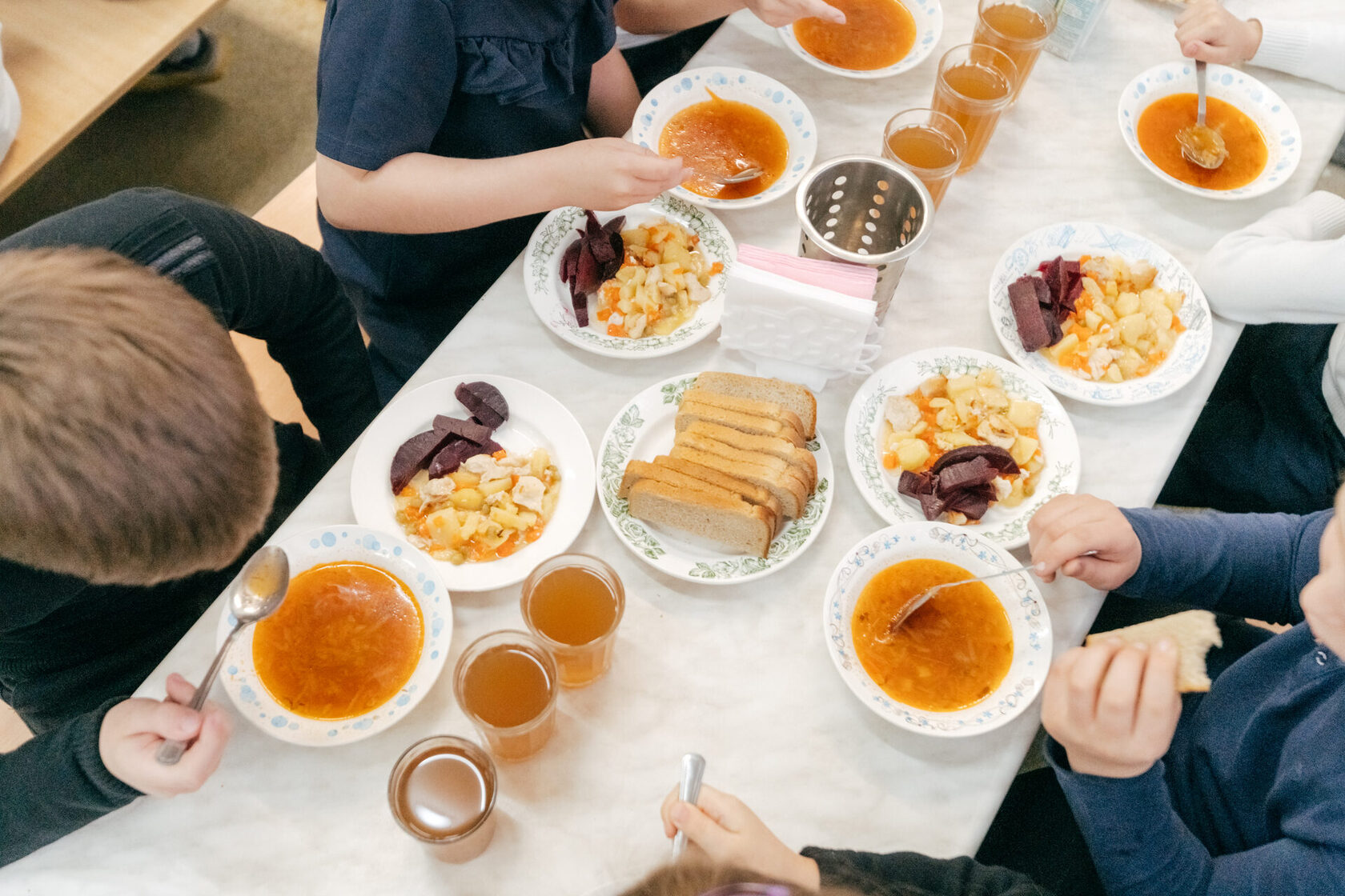 Директор школы №43 Олег Лелюк: “В условиях школы старой постройки, где пищеблок построен по старым требованиям СанПин и не подходит под современные условия, однозначно привоз готовой продукции это выход. Во-первых, всё вовремя. Во-вторых, вся продукция уже проверена на комбинате, всё приезжает именно в том состоянии, в котором нужно. Еда приезжает горячей и не успевает остыть. Здесь, в 43 школе я убедился, что качество готовых блюд, которые я дегустирую ежедневно, отвечает самым высоким требованиям. Главные эксперты по качеству еды - дети. Дети едят очень неплохо”.